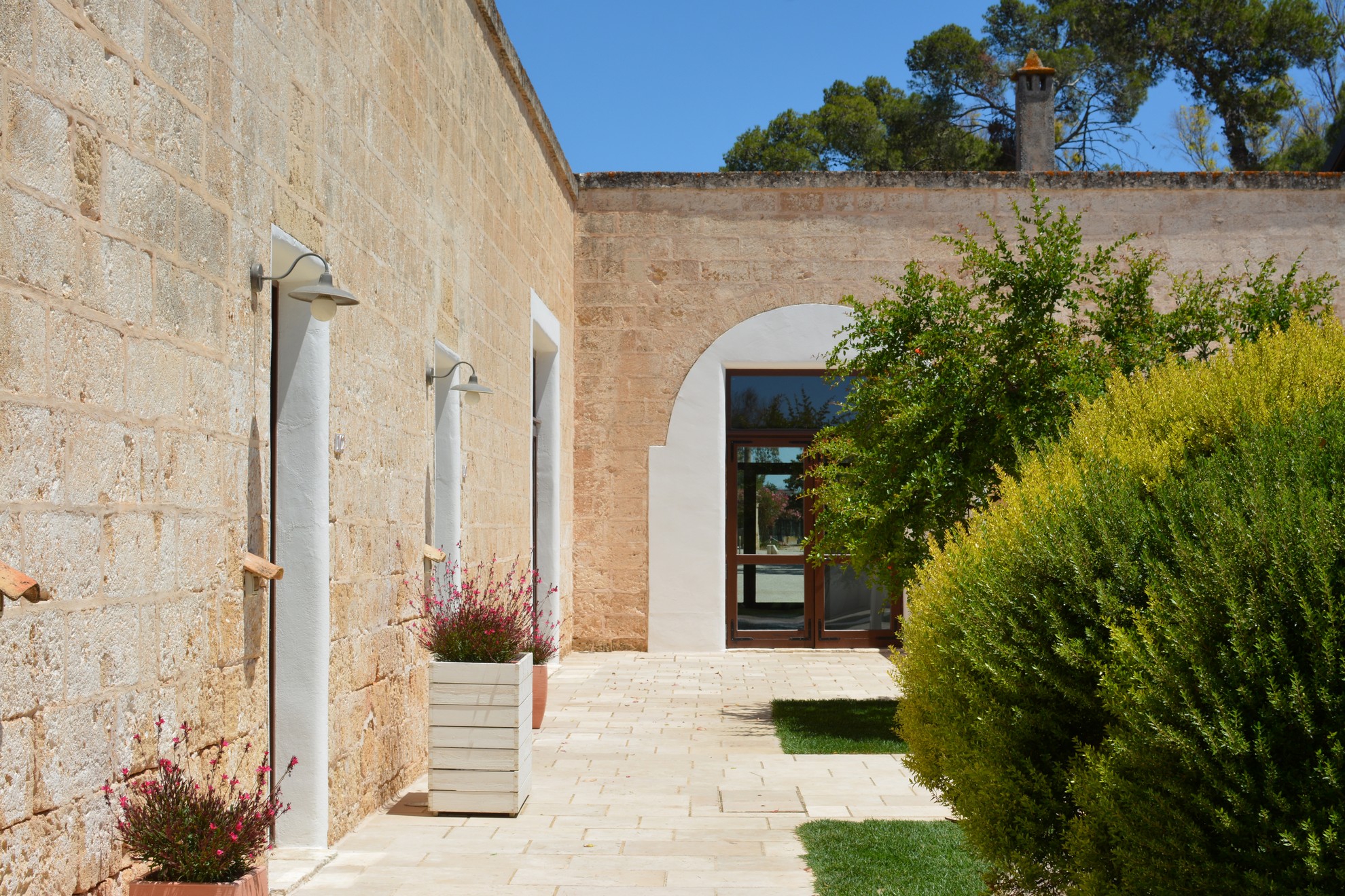 Storia ed eleganza si intrecciano in ogni angolo della nostra masseria. Mura e chianche parlano di artigiani che lavoravano la lana, le stanze ricordano uomini e donne intenti a produrre e allevare: tutto è bellezza, significato, accoglienza. Un’accoglienza di volte a stella e pietra leccese, di ulivi secolari e profumo di Mar Ionio. Un nuovo modo di intendere il lusso, che si traduce in semplicità, silenzio, natura incontaminata.